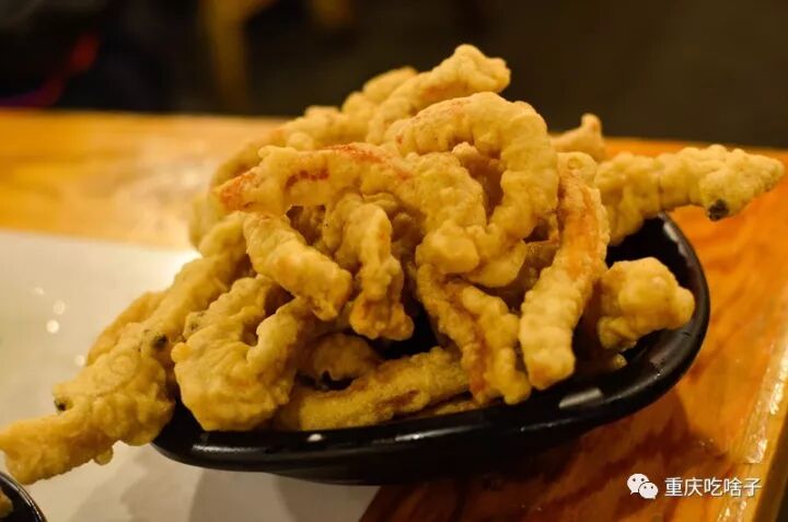 重庆吃火锅必点的现炸酥肉,一般都是现炸,趁热吃,真正的外脆里嫩口感,瘦肉多的话就有嚼劲儿,里面一般还会放几颗花椒提味。