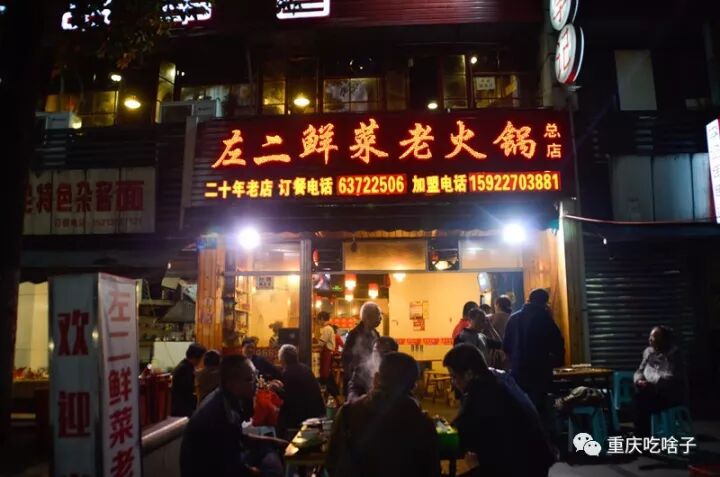 外面坝子几张桌子坐满了人,火锅香味随冷空气飘散,重庆人对坐坝坝吃美食有情怀,尤其是夏天,光着膀子、喝着老山城、划着乱劈柴,这就是老重庆的市井文化。