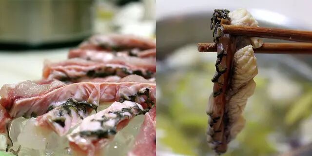 5.龙胆鱼尾:因为经常摆动,肉量少但特别咬口,口感滑润,胶质厚,嚼劲十足。