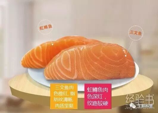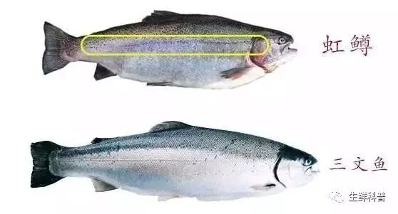 下面我就教大家几招如何分辨三文鱼和虹鳟: