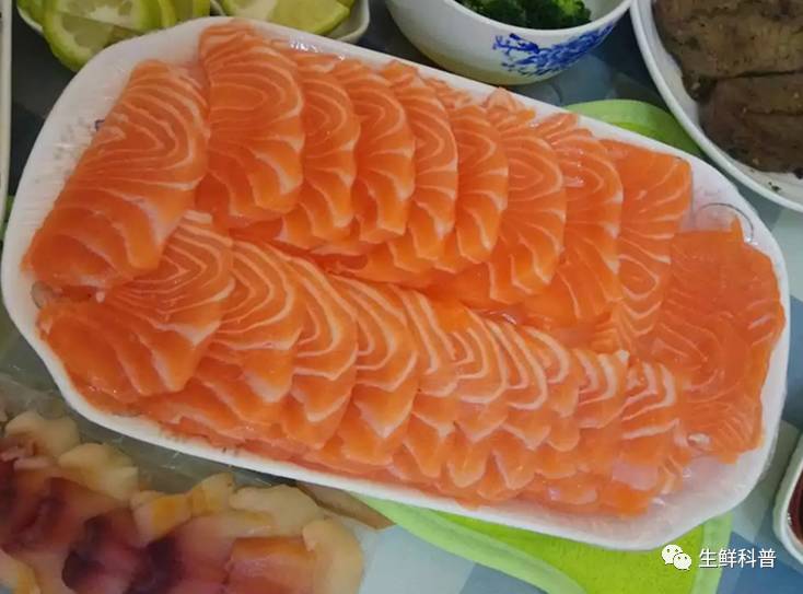不过因为咱们中国还没有出台这方面的规定,吃货们还是有机会吃到冰鲜的三文鱼,所谓冰鲜三文鱼就是捕捞之后,马上放进装满冰块箱子里保鲜,然后以最快的速度空运到中国,正常情况下从捕捞到进入中国买家的仓库不会超过3天的时间,所以冰鲜三文鱼能够最大限度的保留住肥糯香甜的口感,不过缺点就是价格贵,冰鲜三文鱼在中国市场上分切之后的批发价应该在每斤80元左右(某宝零售价格一般在100元左右,超市零售价格一般在120元左右)。