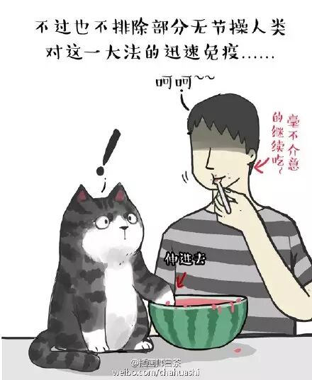 知名铲屎官,家中一猫一狗,作品也基本是围绕它们展开。中国风水墨画的设定让作品更有特色,而且喵星人和汪星人放在那儿都能涨粉,何况还斗智斗勇不断耍贱呢?
