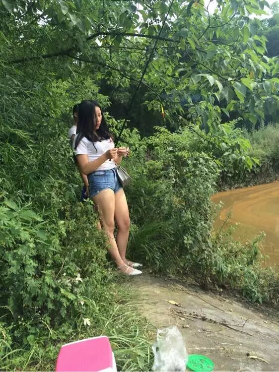 她和闺蜜穿着各自休闲的衣服,我拿着鱼竿和鱼食,奔向了钓鱼的地方。