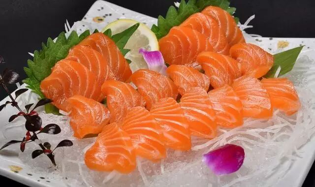 3.口感:新鲜的三文鱼入口感觉结实饱满,鱼油丰盈,味道甘香,肉质爽滑,脂肪均匀,不太油腻。而冒充的虹鳟鱼,肉的颜色较淡,比较有嚼头,口感上很容易区分。
