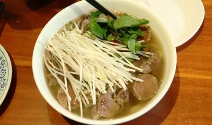 除了金沙虾球,还有一个不得不尝的美味,就是生牛粉。这碗粉最具有看头的就是汤头,用美奈越式料理独家秘方和牛骨熬制一整天,才能熬出这样浓香四溢的牛骨汤哦!