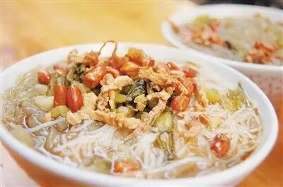 临高粉以酸咸味为主,其配料牛肉干和猪肉片是最讲究的,酸酸咸咸的粉汤和这些肉干一起放到嘴里,让你吃了一碗还想要。吃粉时,可以另外加点一份蜜汁猪肠,这样临高粉就更加美味了。