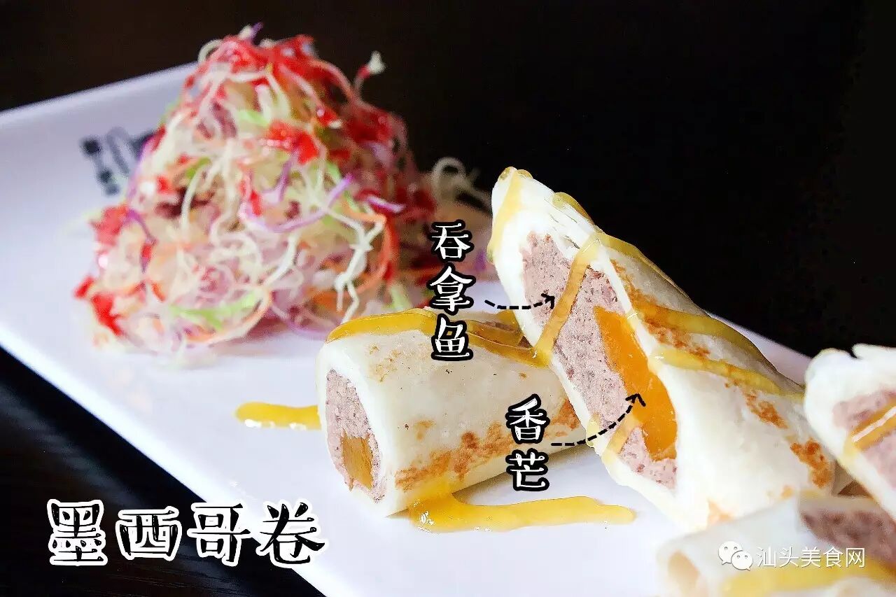 薄饼皮卷满吞拿鱼和芒果块,入口咸香又有点酸甜,也没有腥味,可以一口气吃好几块。