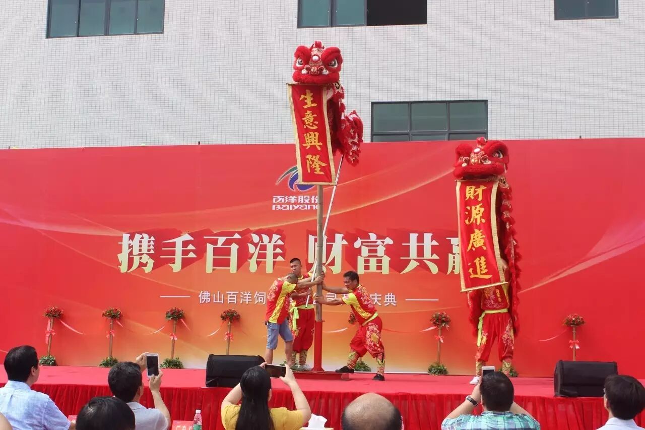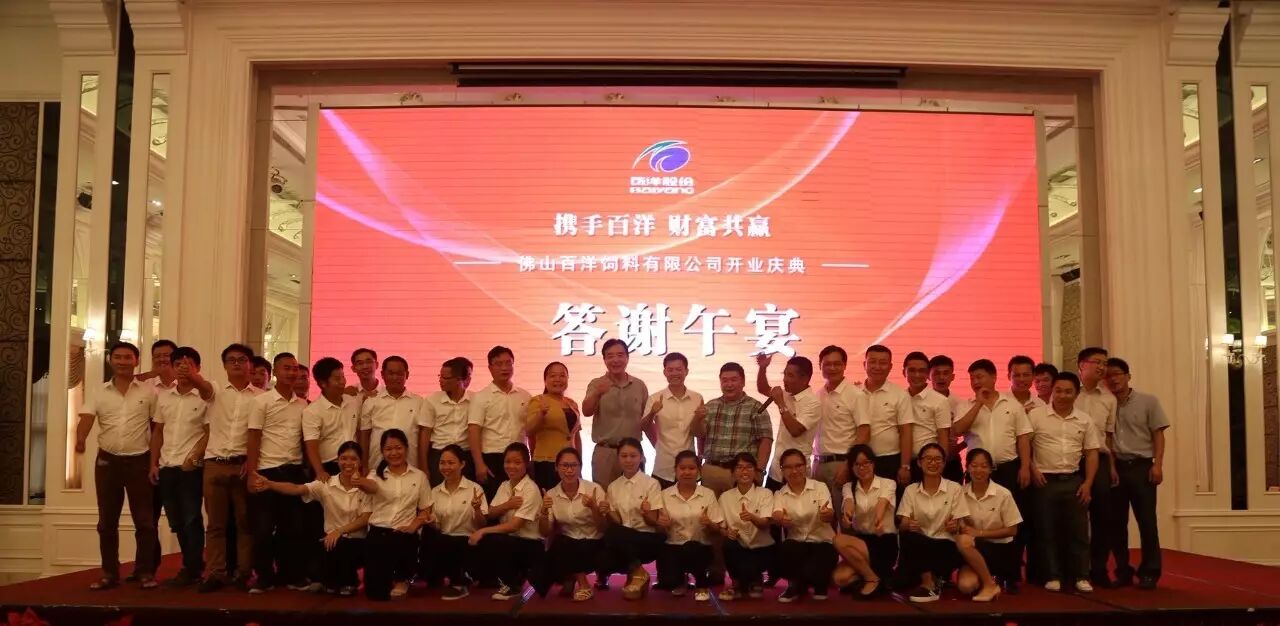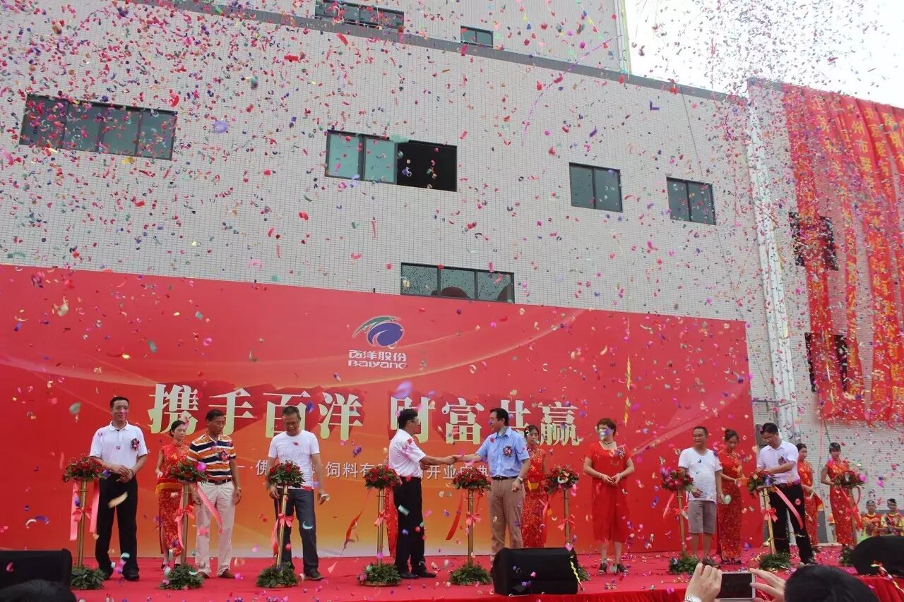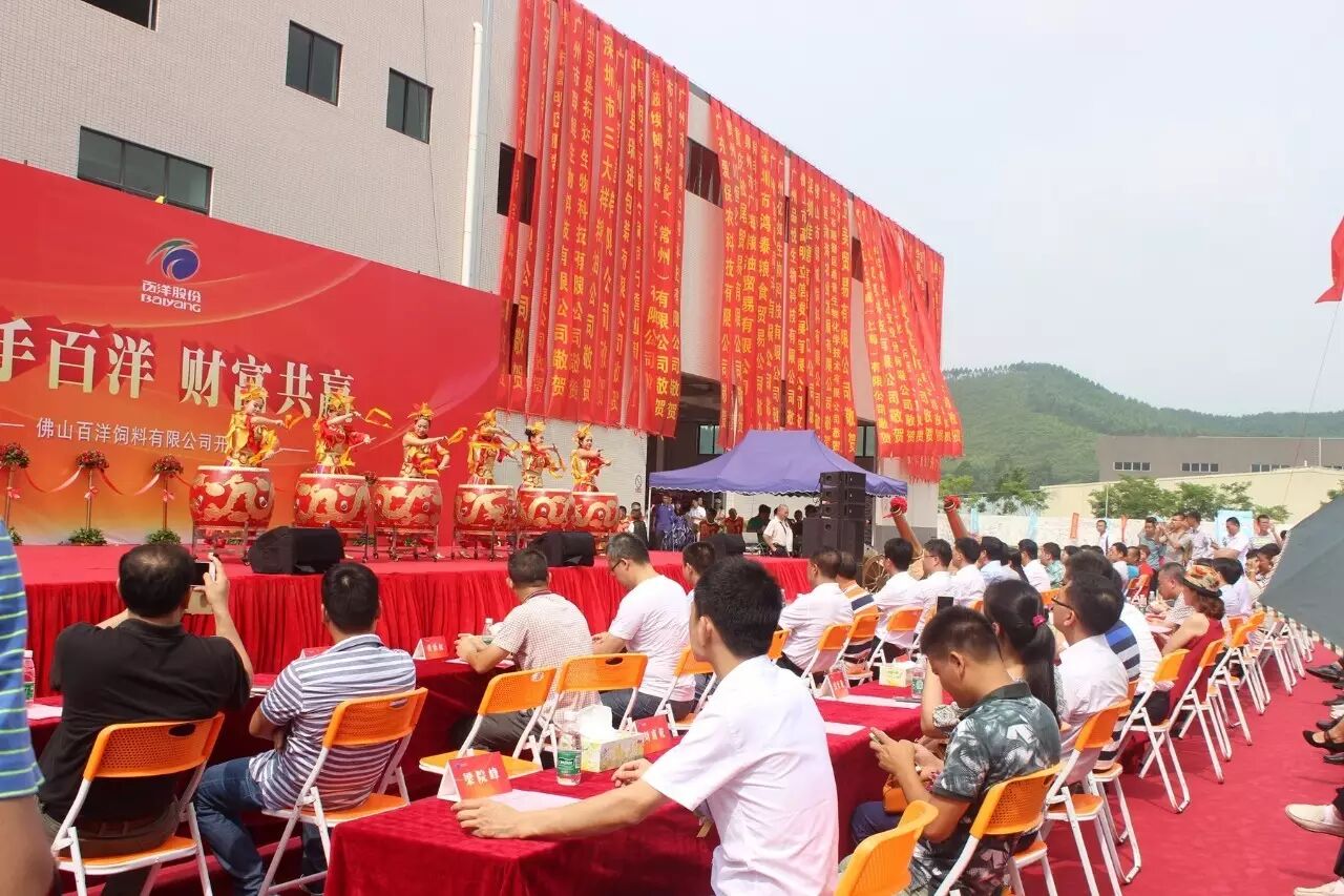 6月13日,佛山百洋饲料有限公司(简称“佛山百洋”)开业庆典隆重举行。佛山市当地政府官员代表、项目建设单位代表、百洋产业投资集团股份有限公司(简称“百洋”)董事长兼总裁孙忠义、执行副总裁王玲、副总裁杨思华、佛山百洋公司各部门与集团兄弟部门公司管理高层,以及来自广东各地的经销商和供应商代表,将近600人参加了此次开业庆典。