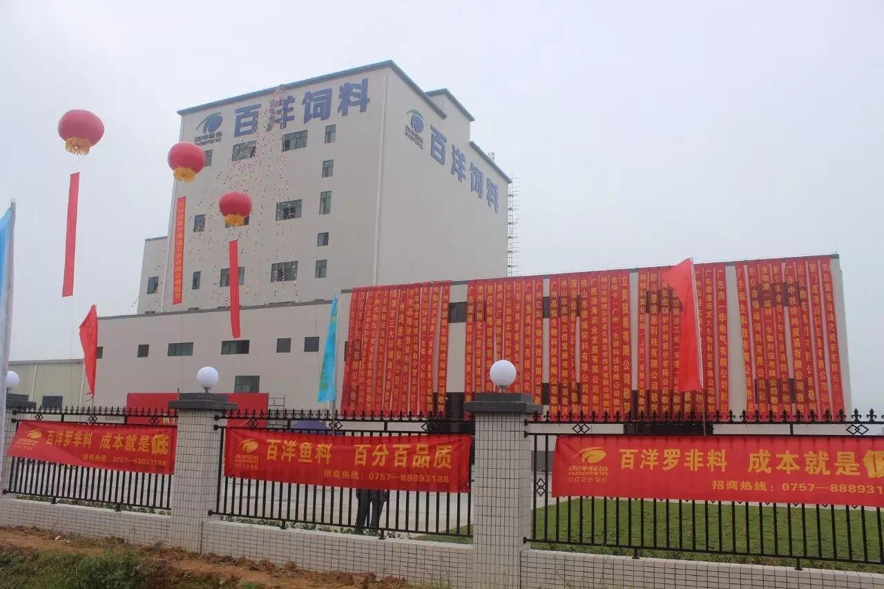 佛山百洋是百洋在广东地区投资设立的首家专业从事高档水产饲料及畜禽饲料生产、销售和技术服务为一体的饲料企业。项目总投资1.47亿元,分两期进行投资,一期工程总投资在8000万左右,建有4条专业化生产线,年各类水产饲料生产能力达18万吨。项目一期工程的产品主要定位为草鱼料(主打佛山的高明,顺德和三水以及中山地区)和罗非鱼料(以在珠海、江门、阳江和茂名销售),但由于百洋在中国的鱼粉之乡山东荣成拥有大型的鱼粉生产企业,能够为公司饲料业务的发展提供很好的原料支持,因此二期工程将以特种料作为主要的发展方向。