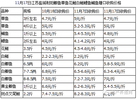 最近一周多的时间里,江苏盐城射阳地区淡水鱼情况不是很好,整体对外流通量不算大,和上旬相比,没有一个品种价格上涨,最近三周里,草鱼鲤鱼先涨后跌,花鲢价格连续稳定,白鲢价格小幅下滑,白鲫鱼和黄金鲫鱼价格连续三周下滑,导致射阳地区淡水鱼行情的整体压力比较大。从塘口情况来看,现在无论是精养塘还是混养塘,存塘鱼规格已经不会再有多大提升了,养殖户喂料越来越少,塘口管理的工作稍微轻松了一些,坐等鱼价好转大量出鱼,现在这个价位,养殖户卖鱼积极性不高,惜售心太重。不单单是射阳鲫鱼价格不好,整个盐城鲫鱼价格都在下滑,一方面跟终端市场走量不算大有关系,另一方面是因为盐城周边的泰州扬州地区鲫鱼也都普遍上市了,鱼价难免受到冲击。11月17日江苏盐城射阳地区具体报价如下,3斤左右草鱼收购价是4.7元/斤,4斤以上草鱼收购价是5元/斤,1斤以上鳊鱼收购价是4.8元/斤,2斤左右鲤鱼收购价是4元/斤,3.5斤花鲢收购价是4.5元/斤,3.5斤白鲢收购价是2元/斤,6.5两白鲫鱼收购价是5.8-5.9元/斤,7-7.5两白鲫鱼收购价是6.3-6.4元/斤,8-8.5两白鲫鱼收购价是7元/斤,1斤以上黄金鲫鱼收购价是5.4-5.5元/斤,2.2斤斑点叉尾鮰收购价是8元/斤。