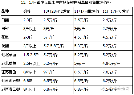 从过去的一周左右时间来看,重庆市场淡水鱼情况呈现由强转弱的格局,这也是为什么这几天批发商报价都比十一月上旬有所下降的主要原因。重庆盘溪淡水鱼水产市场批发大户王老板告诉中国水产养殖网(微信号:weishuichan),前几天市场上淡水鱼流通量比较大,外地水车到货量增加,这几天市场主要是慢慢消耗的阶段,每天的淡水鱼销量大概在40万斤左右,鱼价不怎么好,估计周末这两天情况会有所好转。和上旬相比,重庆市场淡水鱼价格都有一定的下滑,鲢鱼鲫鱼草鱼无一例外,花鲢白鲢因为市场走量最大,这几天行情不好的时候,销售压力相对其他几个品种都要大一些。具体来说,11月17日重庆盘溪水产市场上2-3斤白鲢批发价是2.4元/斤,3斤以上白鲢批发价是2.7元/斤,2-3斤花鲢批发价是4.5元/斤,3斤以上花鲢批发价是5.2元/斤,1.5-2.5斤草鱼批发价是5.2元/斤,2.5斤以上草鱼批发价是4.8-5元/斤,8两以上江苏鲫鱼批发价是7.8元/斤,6-8两湖南湘云鲫批发价是6.2元/斤,8两以上湖南湘云鲫批发价是6.5元/斤。估计十一月份剩下这两周,重庆市场淡水鱼的行情仍然会呈现这种起起落落的情况,这主要还是跟市场销量不稳定有直接的关系,重庆的情况也同样是成都等市场出现。