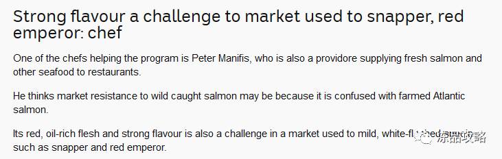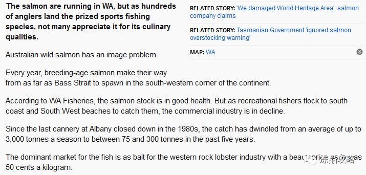 文章中写道,澳大利亚泛滥的这种“salmon”是澳洲特产,并非我们常见的大西洋鲑,或太平洋鲑。而且,这种鱼肉质粗糙,腥味很重,澳洲人自己都不吃...