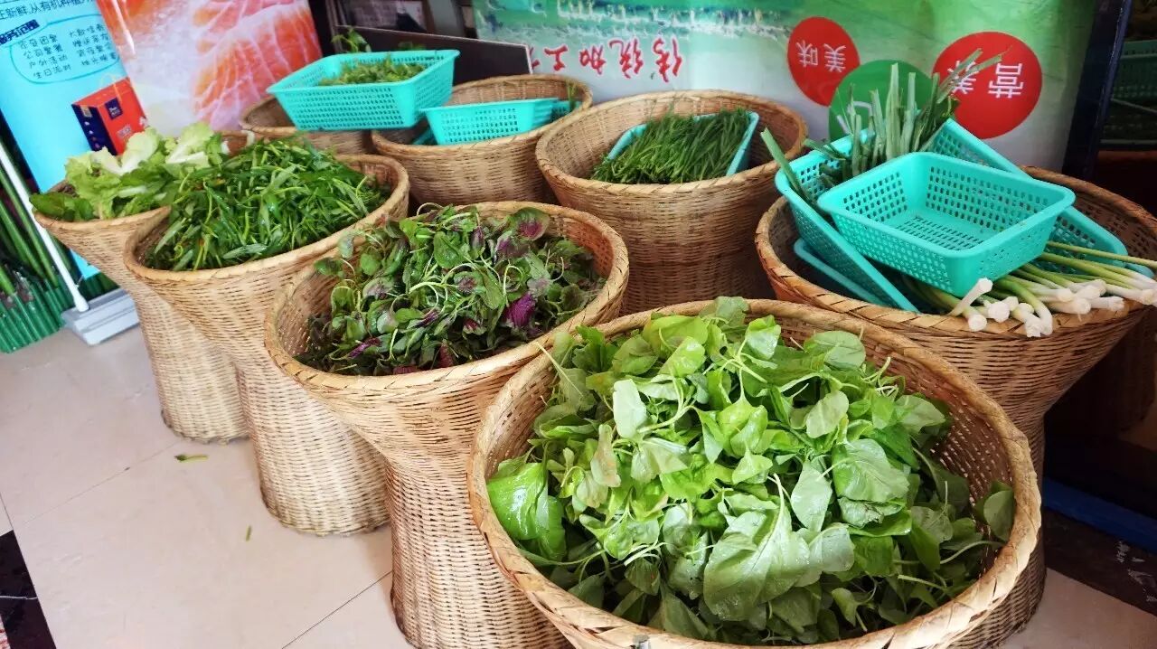 ▲楼下大厅,右侧都是新鲜时蔬摆放