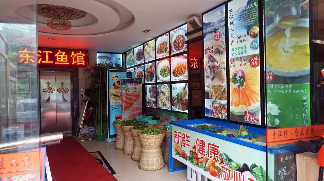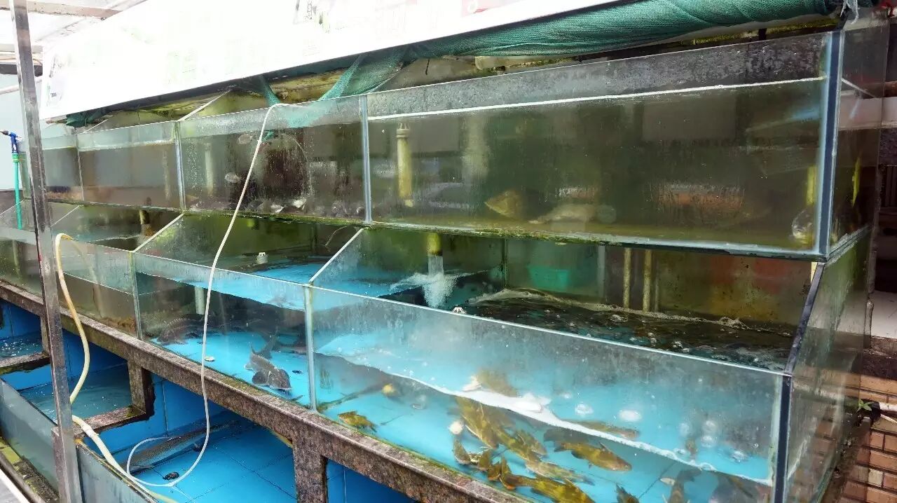 全部的鱼都是来自于东江湖,每天清晨都会有东江湖直供鱼车到店,每次采购完都是直接进入到鱼馆里边活养。每条鱼身上都是直接有挂牌,编号的。