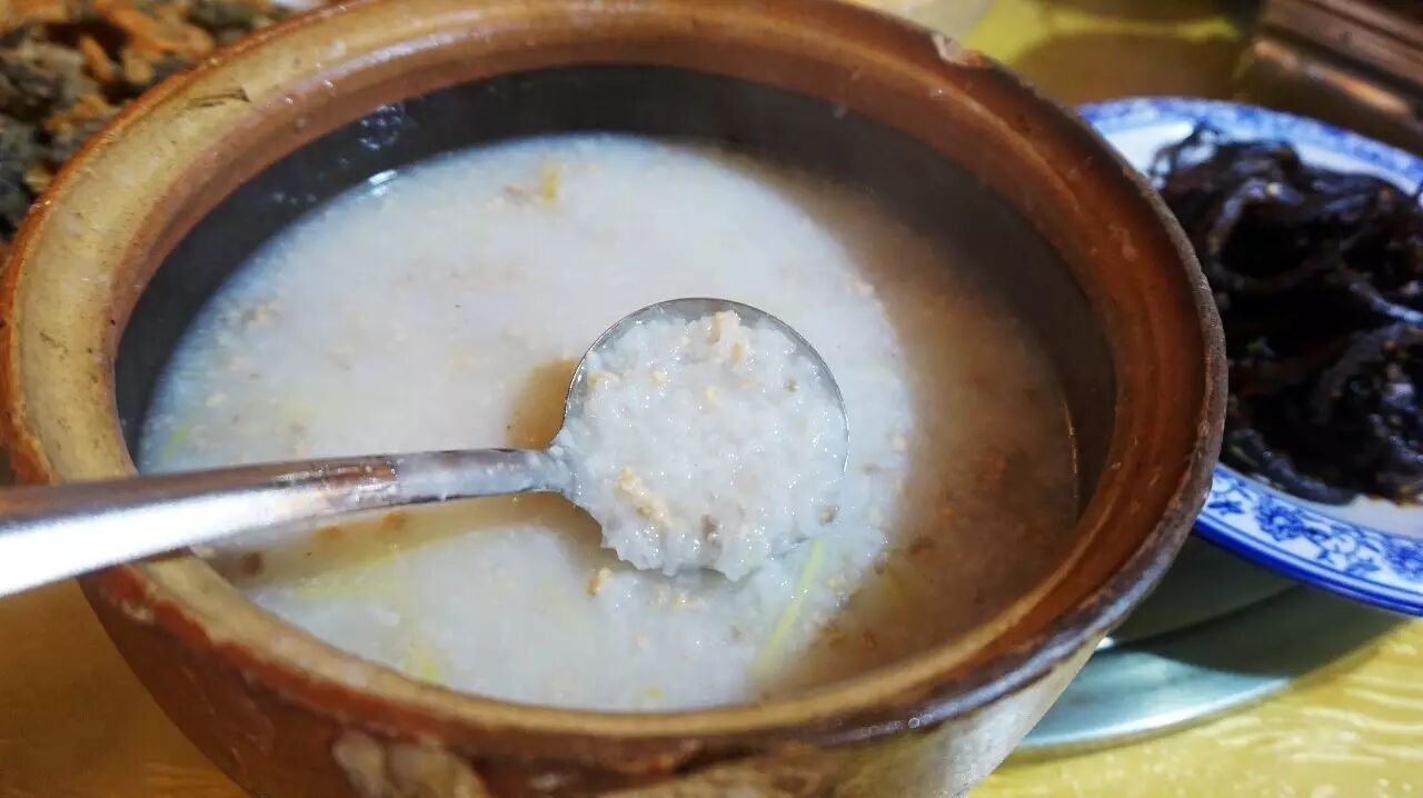 虹鳟三文鱼腩煲粥——鱼腩是大家都很少会吃到的部分,取其少量入细米熬粥,慢火砂锅的熬制出锅,口感倒是清爽不少,生姜去掉了大部分的腥味,保留了鲜。鱼腩都熬的很糜烂了,米粥也刚刚好。就是一大口锅,有点吃不完。建议四人份起点这个粥吧,不然肯定喝不完。