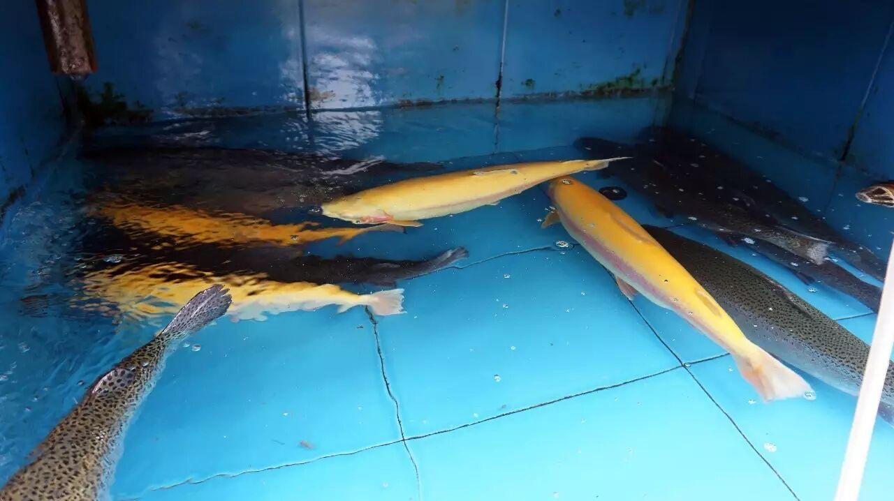 每条鱼都差不多是这么大,活蹦乱跳的就抓上来开始敲晕,解剖去肠刮麟后,直接送进厨房,由大师傅精心烹制而成后就可以直接上桌啦!