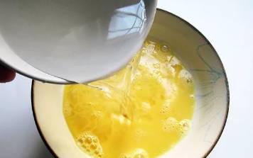 在鸡蛋中加入水,水是鸡蛋液的2倍