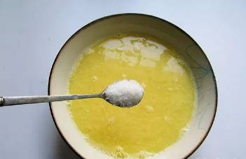 鸡蛋液打发均匀,放入一勺盐继续搅匀