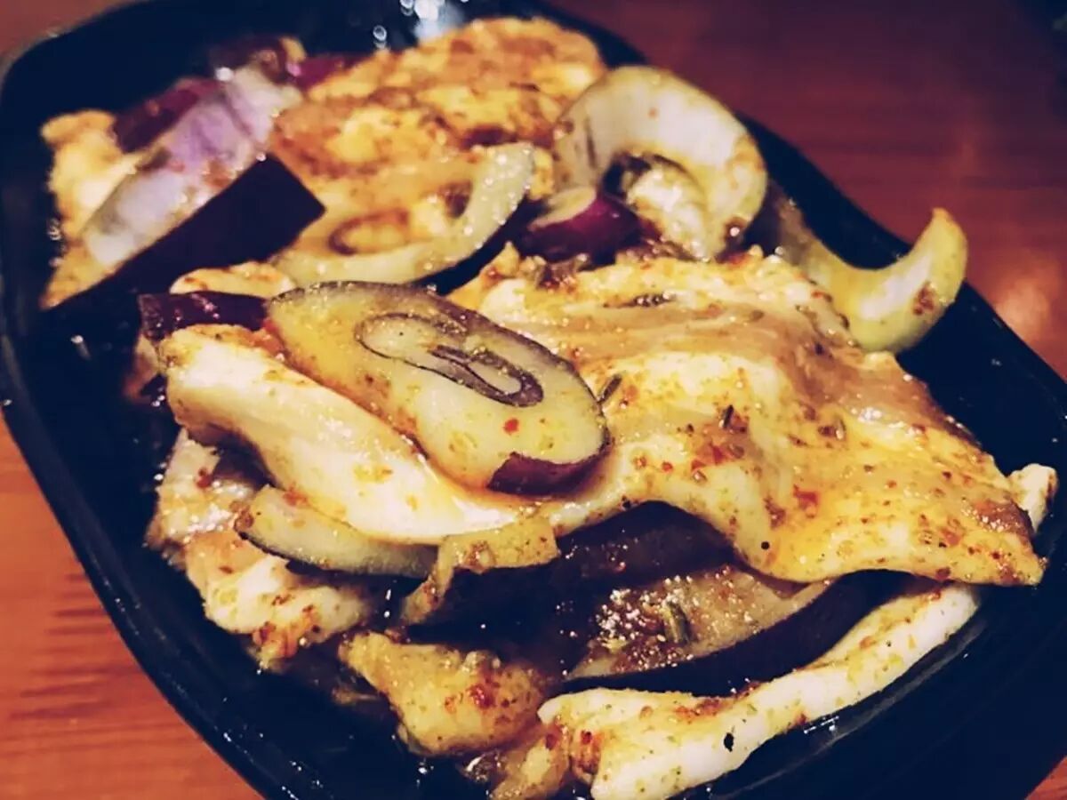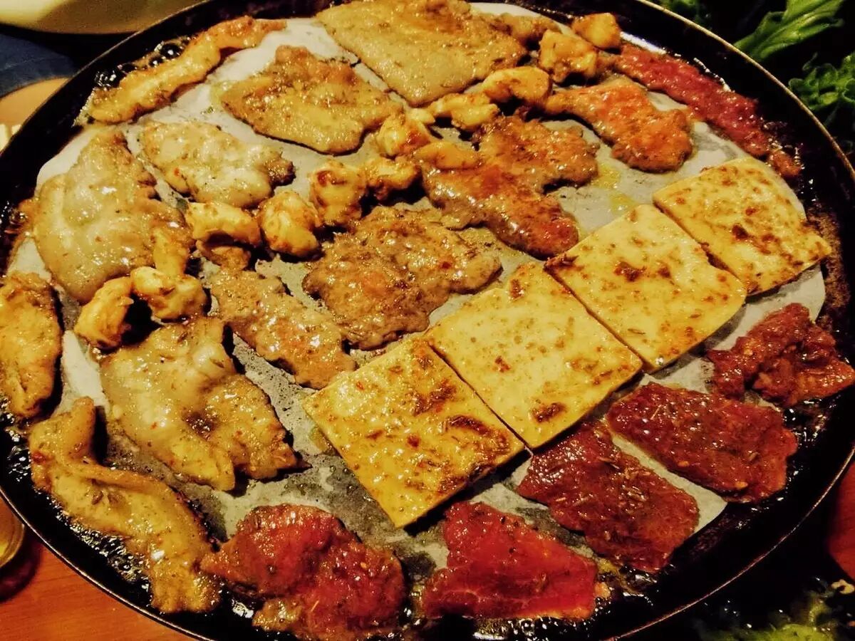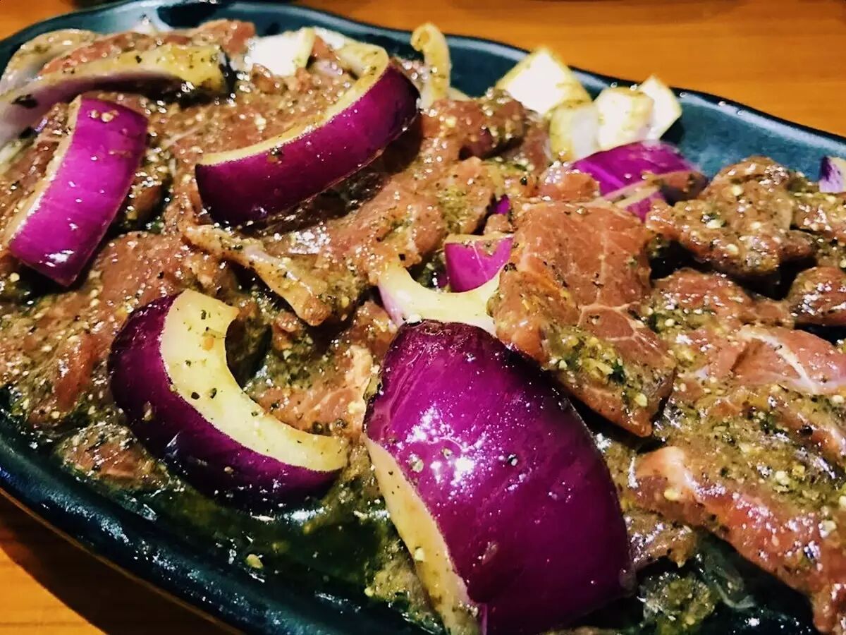 肉的份量足,不像最先做湘式烤肉的“留效”,洋葱占了一大半。这里五花的扣分项是沾料和蒜瓣一定要自己提醒,店家才会上,不加这两样,口感会打折扣。