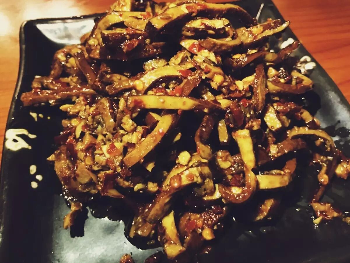 老板回答讲是自己拌的,我又点了一份,要老板现拌。老板话也接得快,对着厨房喊:“娭毑哎!再现拌一份香干子。”