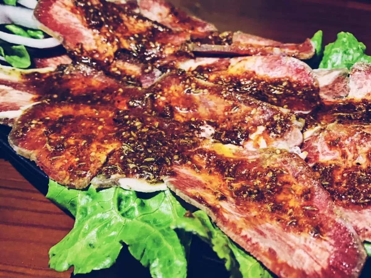 烤牛舌最有名的应当是日本仙台,但有趣的是纯种的日本和牛牛舌并不适合烤来吃,一是太小,二是太肥,所以一般仙台烤的都是加拿大、澳洲或者美国牛舌。日本和牛的牛舌一般用来做刺身,嗯,我猜你开始脑补牛舌刺身和你舌头亲密接触的画面了。