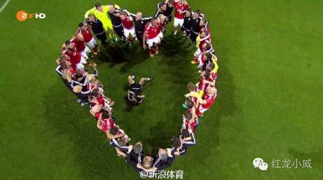 威尔士成功晋级后,所有队员拥抱,摆出了心的造型!