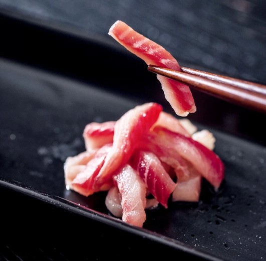 “ 一提起生鱼片,绝大多数人都会联想到日式料理,伴以淡雅清醇的日本清酒,就连厨师的刀法也不自觉地向日本剑道干脆麻利的记忆靠拢。日本人吃鱼是极其疯狂的。日本料理以鱼做材料的菜式中,刺身和寿司又是极品。这两款菜式最讲究材料的新鲜和厨师的刀法。