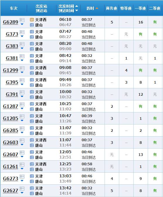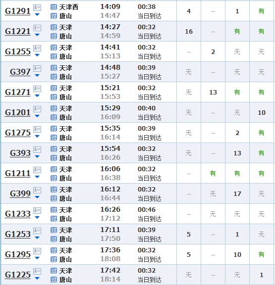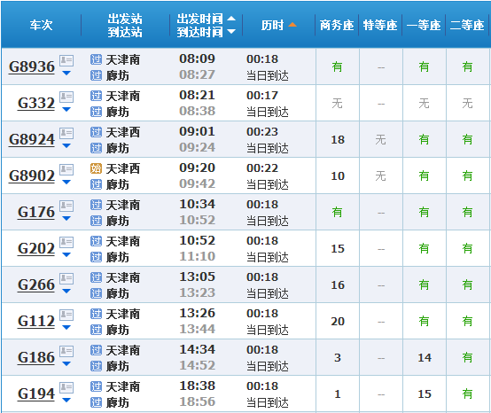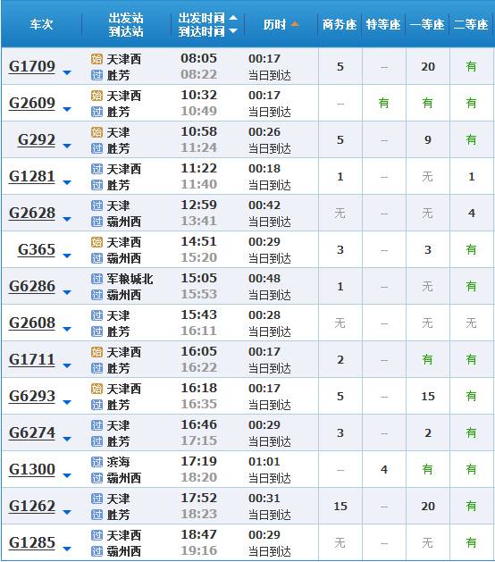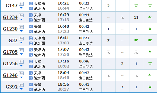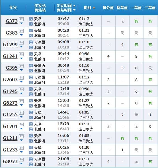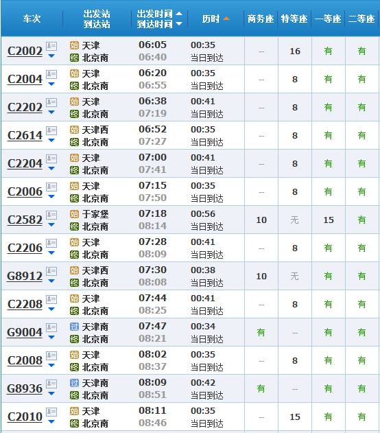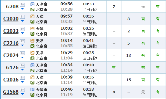 (天津到北京的高铁/城际车次有一百多趟,以上只是部分)