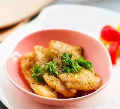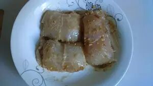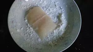 切好的龙利鱼,表面均匀的裹上淀粉;
