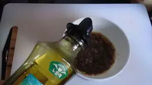 蒜切碎末,加入蚝油,生抽,黑胡椒粉,食用油,橄榄油,调汁;
