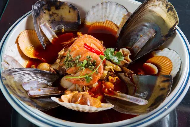 麻辣海鲜放大招,一盘N味吃到爽!青口、扇贝、圣子、虾……应有尽有。麻辣+海鲜,合二为一,那滋味儿,不能再说了,小龙已迫不及待地开吃!