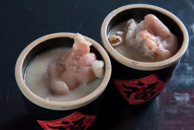 5个多小时文火煮制而成,完全无添加。汤色呈奶白,猪蹄其外观肌肤胜雪,形似飞花,滑嫩细致,柔嫩爽口,香而不腻。这就是传说中的老妈蹄花汤。