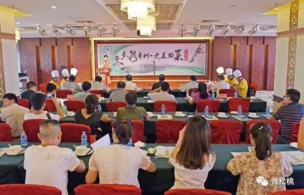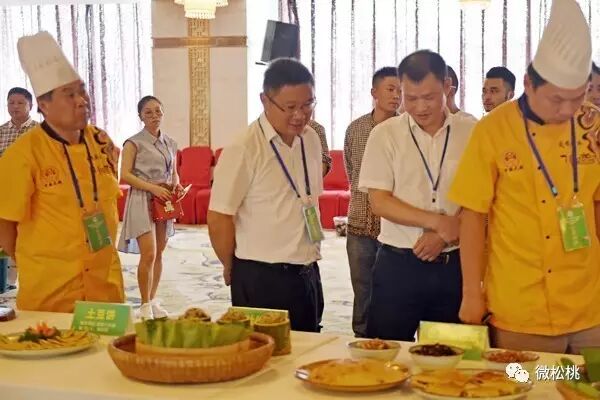 7月16日,我县在国际大酒店二楼举行“大美黔菜”展示品鉴推广活动。县政协主席桑士棕,,市政协民族宗教委主任龙云清,市商务局副局长王志建,县委副书记田江,县委常委、常务副县长吴廷友,副县长刘攀,县政协副主席冉光珍出席活动。黄兴全、唐丽华等6位中国烹饪大师担任品鉴组专家评委,并增加了15位大众评委对松桃美食进行现场品鉴。