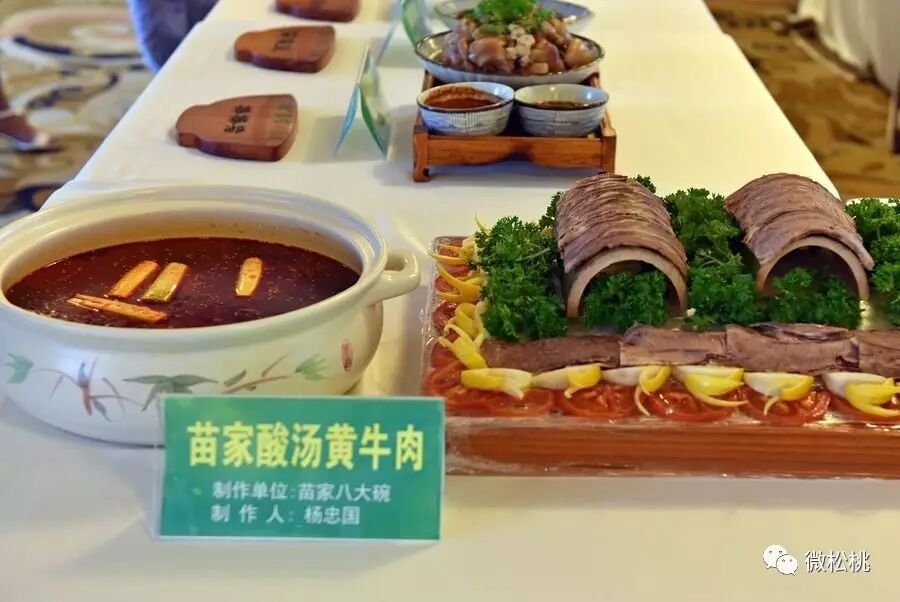 通过品鉴,我县土鸡炖包谷粉、荞巴菌炒牛肉、苗王湖生态角角鱼、松江金丝甲鱼、青纱帐觅黄金甲、霸王举鼎、苗家鲜羊肉、苗家酸汤黄牛肉、八宝贡米饭、苗家酸汤、苗鱼、会师火锅、鼎罐肚条、排骨棕、公社巴汤、松桃卤鸭子、大坪豆腐干、秘制牛肉干、神仙豆腐在投票中脱颖而出,菜肴色香味俱全,获得现场评委们一致好评。据悉,部分评选出来的最受欢迎、最具代表性的菜品将参加省组委会组织的年度展示,把松桃特色美食推向全省、全国。